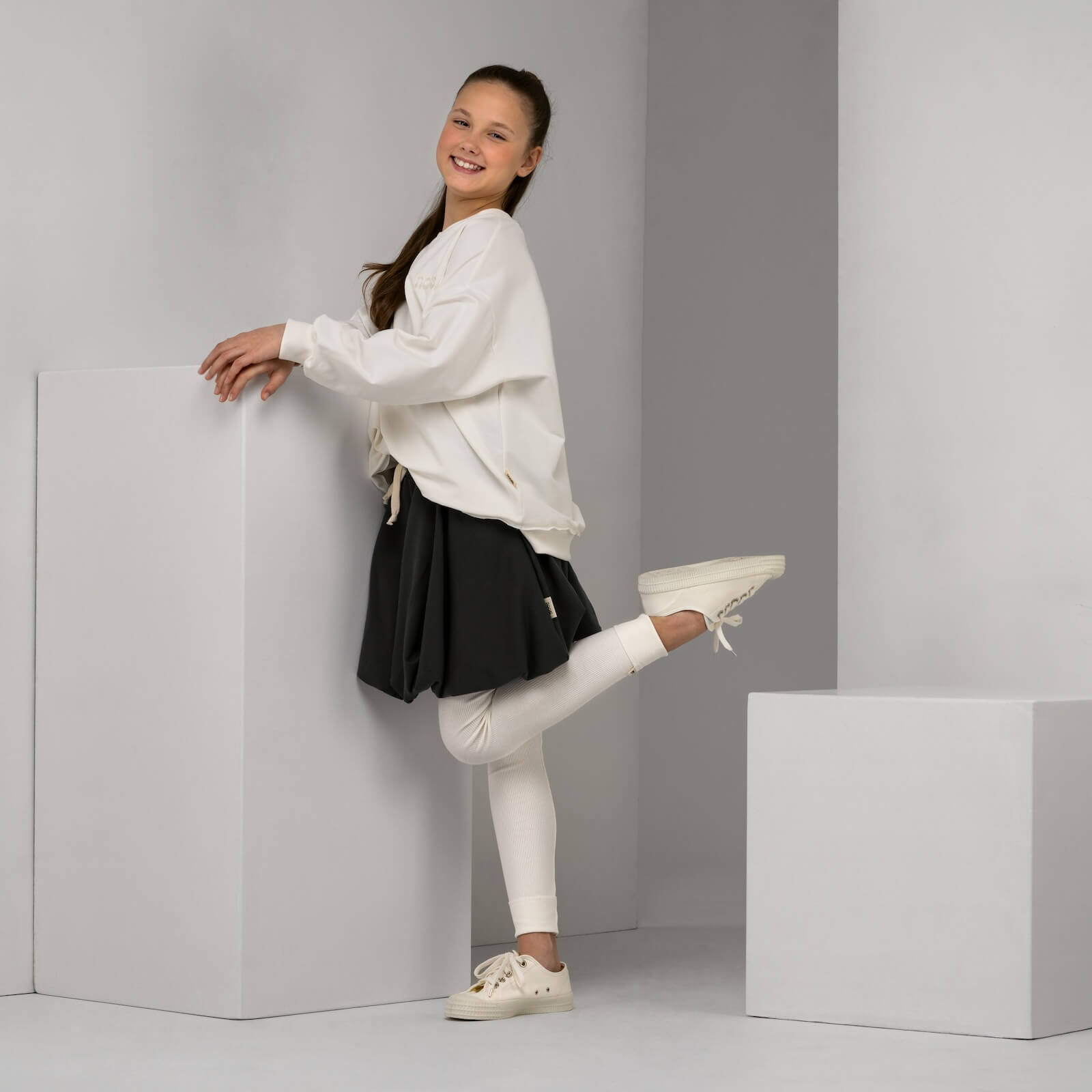 Detské legíny z prémiového rebrovaného úpletu. Pohodlné, prispôsobivé a jemné k pokožke. Pre dokonalý súlad ich ľahko zladíte s čiapkou, čelenkou či inými doplnkami z kolekcie.